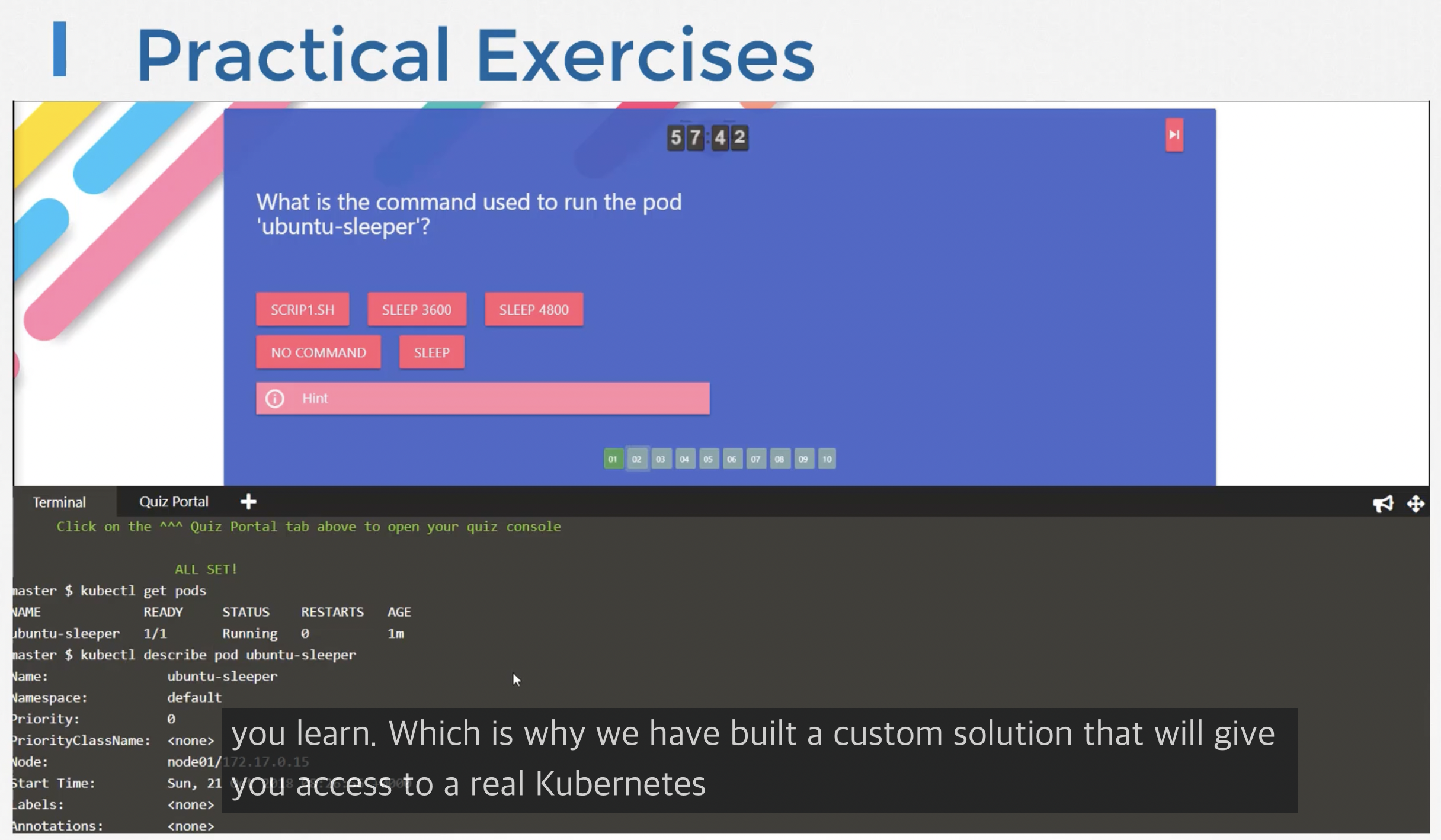 ubuntu-sleeper 라는 pod가 어떤 command 를 실행하고 있는지를 확인하는 문제인데