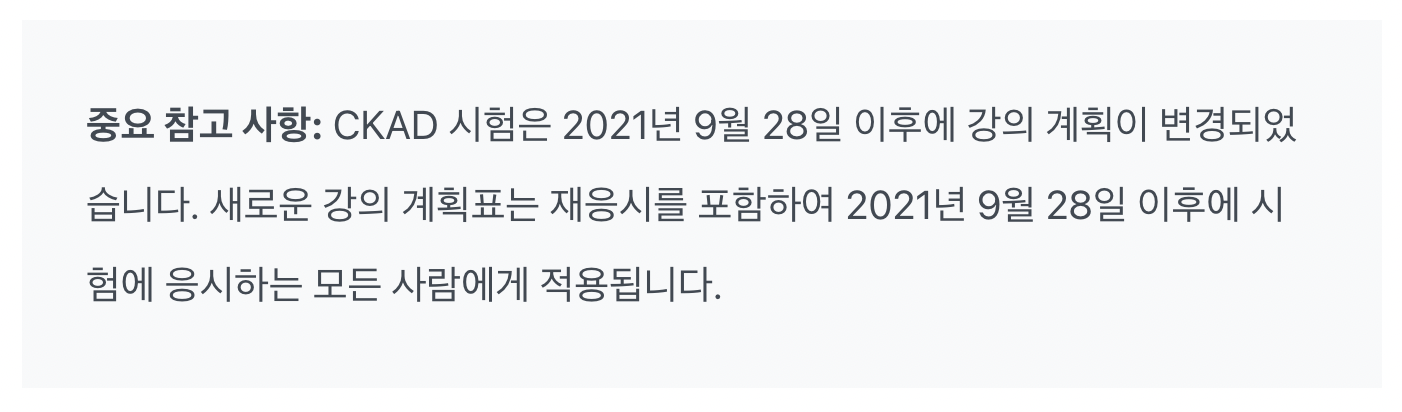 CKAD 는 2021년 9월 28일 이후 시험범위가 달라졌고, 인프런 강사분 말로는 CKAD 가 더 어렵다고 한다.