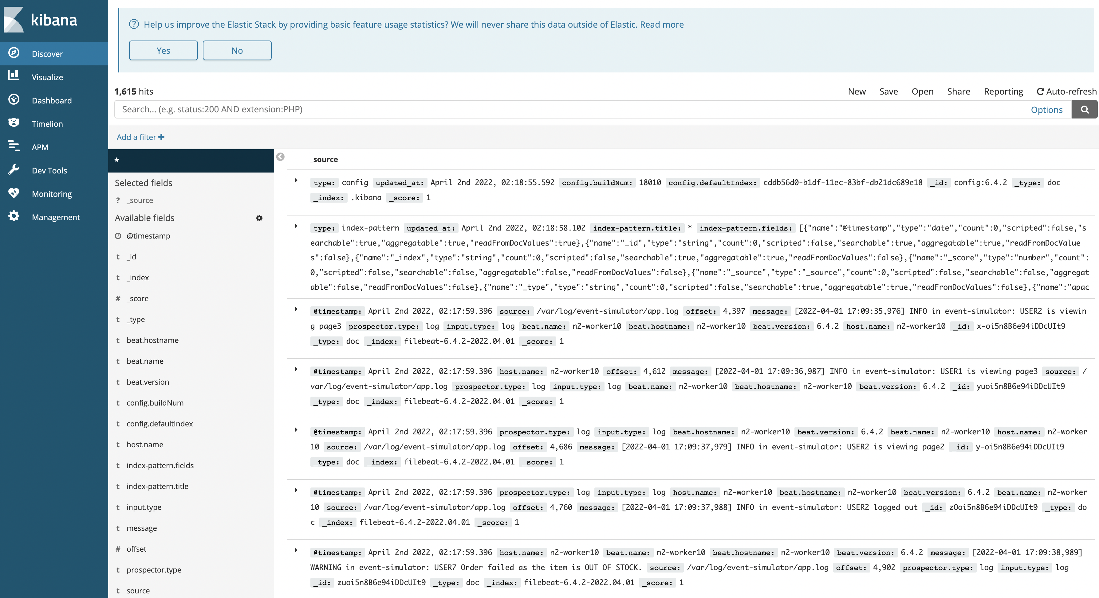 kubectl -n elastic-stack exec -it app -- cat /log/app.log
