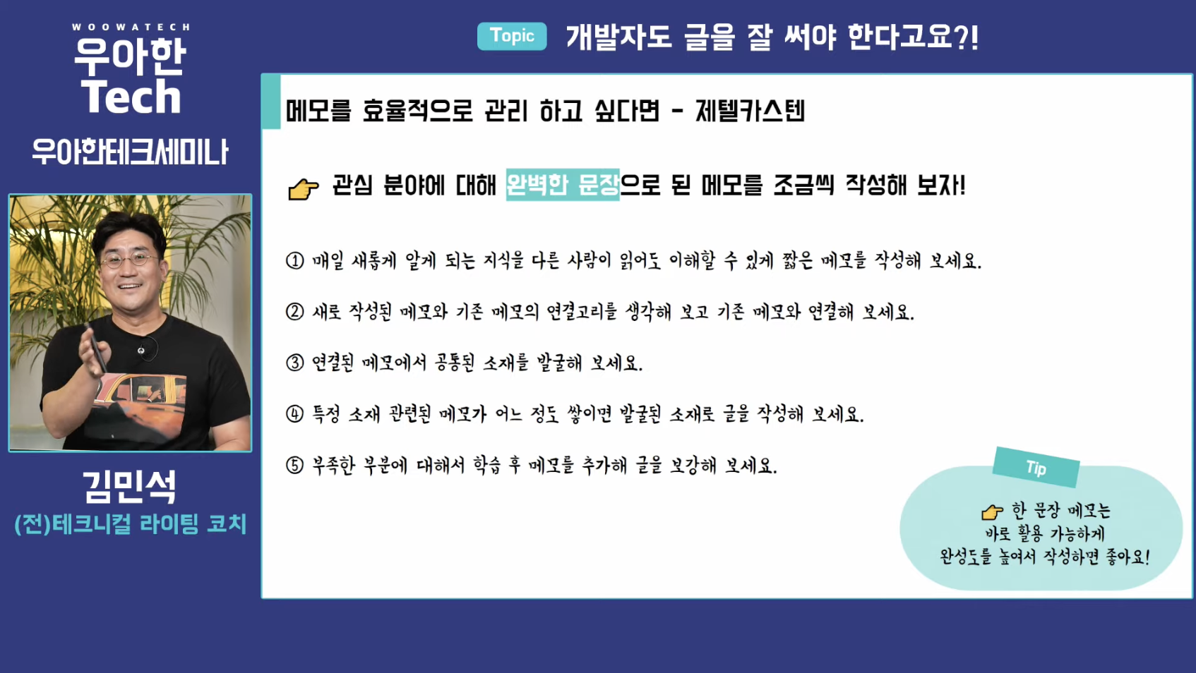 1. 매일 새롭게 알게 되는 지식을 다른 사람이 읽어도 이해할 수 있게 짧은 메모를 작성해 보세요.