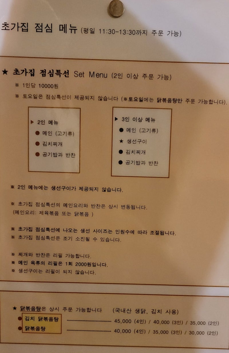- 2인 이상, 자리, 메뉴 차이 등